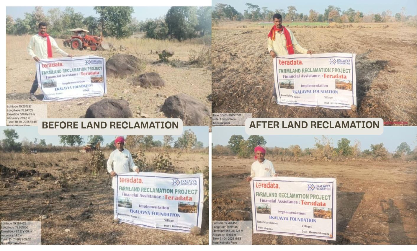 Geographically Adilabad region falls under hilly terrain. Due to this there is presence of boulders of various sizes in the fit- to – cultivable land. Due to this many acres of land remain uncultivated, thus, directly affecting the net income of the farmers. To address this issue, Ekalavya foundation has taken up the project of Land development by Boulder Removal activity in the combined Adilabad region. As a result of this project 142 acres of cultivable land was brought under crop production with the financial assistance of IFFCO, Nuziveedu Seeds Ltd. and other donors.